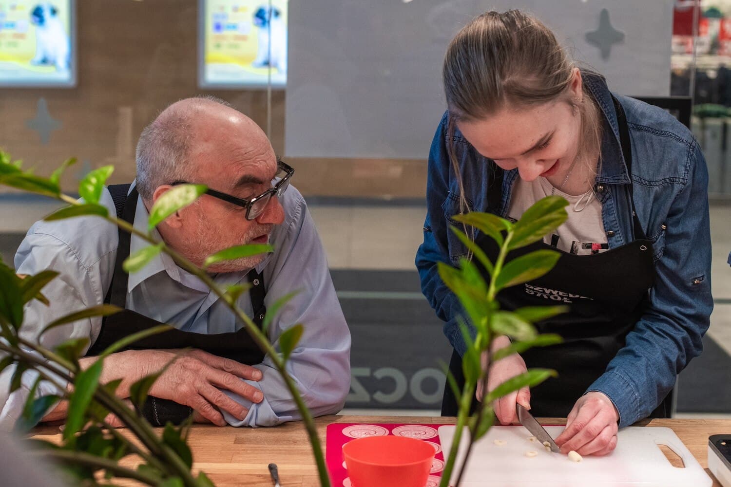 Uczniowie Szkoły Branżowej kształcący się, aby zostać kucharzami i cukiernikami, poprowadzili wspólnie warsztaty kulinarne aktywizujące seniorów z Domu Pomocy Społecznej Kalina. Na nasze zaproszenie w studiu kulinarnym Szwedzki Stół razem przygotowali dietetyczne danie i upiekli ciasto. Młodzież z Drużyny poMocy – grupy wolontariackiej, która działa na terenie SKENDE – stworzyła własnoręcznie laurkę XXL dla seniorów. Spotkanie było częścią działań aktywizujących i rozwijających kompetencje społeczne młodzieży z niepełnosprawnością intelektualną.