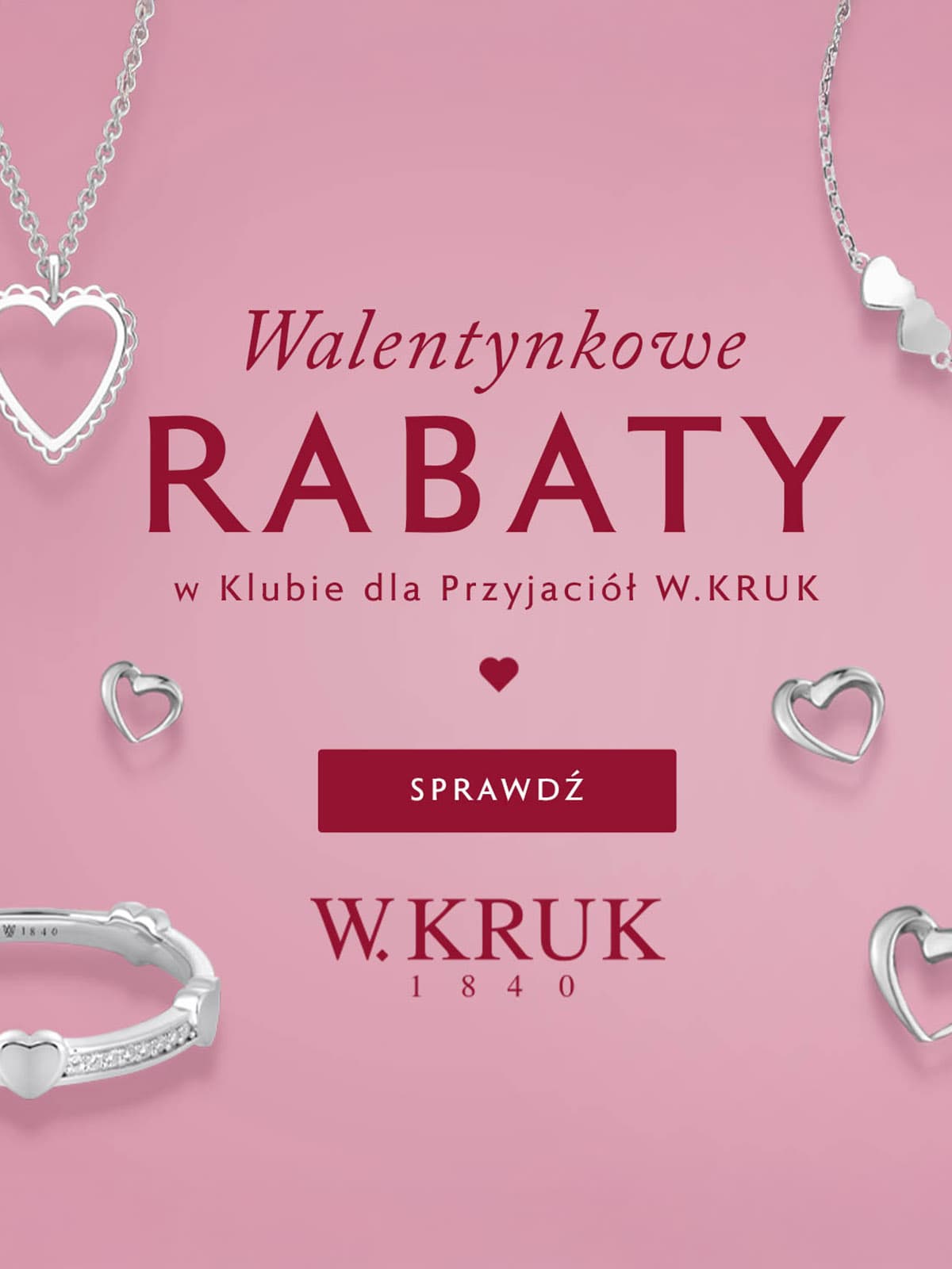Promocja skierowana do nowych i obecnych Członków Klubu dla Przyjaciół W.KRUK. Oferta obowiązuje od 16.01.2026 do 16.02.2026. Rabat naliczany jest od cen regularnych i nie łączy się z innymi promocjami. Szczegóły i wykluczenia dostępne w salonach i w regulaminie na wkruk.pl