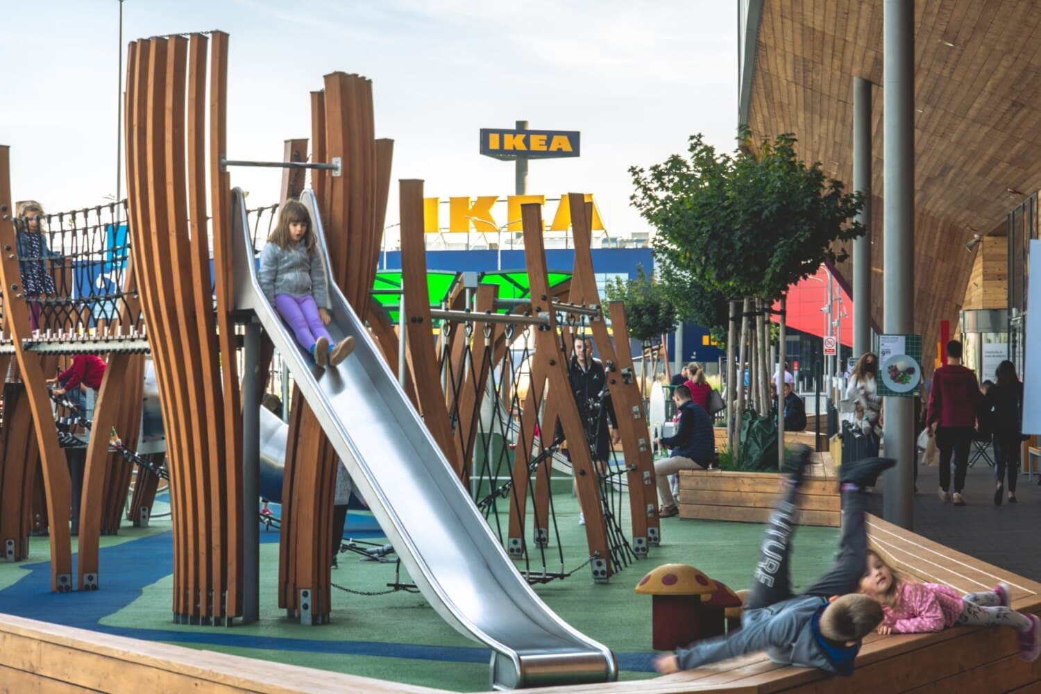 Dzieci na pewno nie będą się nudziły w SKENDE! Czeka na nich specjalnie przygotowany plac zabaw na świeżym powietrzu, który znajduje się przed wejściem od strony al. Spółdzielczości Pracy. Najmłodszych zapraszamy na huśtawki na sprężynach i zjeżdżalnie, które kształtem przypominają zwierzęta, a także do drewnianego domku zabaw, pełnego kolorowych niespodzianek. Ci trochę starsi, mogą spożytkować swoją energię na pokonanie toru przeszkód ze ślizgawkami, wspinanie na specjalnych linach lub zjeżdżanie mini kolejką tyrolską.
