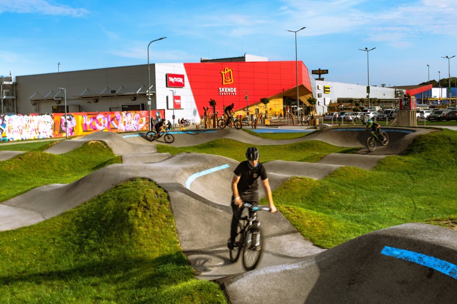 Jak na maxa wykorzystać ciepłe dni? Spędzając czas aktywnie! Na naszych terenach zielonych znajdziesz pumptrack, mini skate park oraz Strefę Psa. Dla najmłodszych mamy także bezpieczny plac zabaw. Możesz tu bawić się, trenować i spotkać z przyjaciółmi. Przyjdź i zobacz sam! Ze wszystkich atrakcji możesz korzystać bezpłatnie.