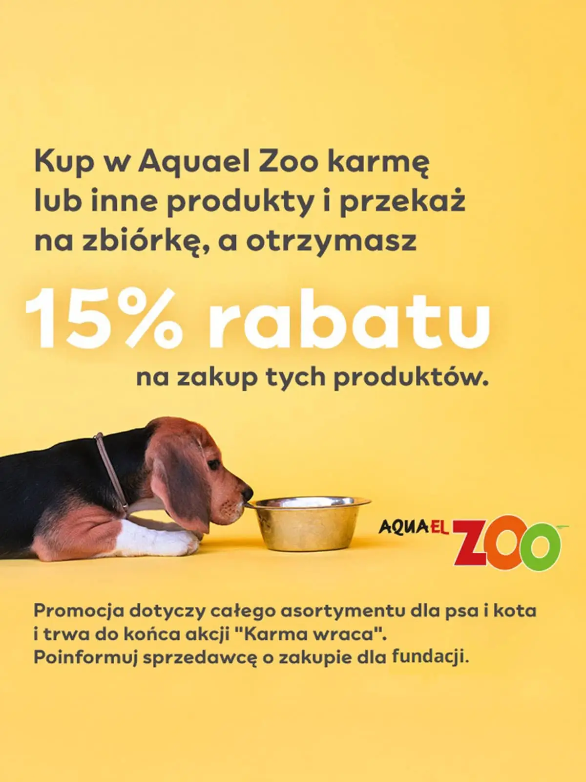 Kup w Aquael Zoo karmę lub inne produkty i przekaz je na zbiórkę, a otrzymasz 15% rabatu na zakup tych produktów.