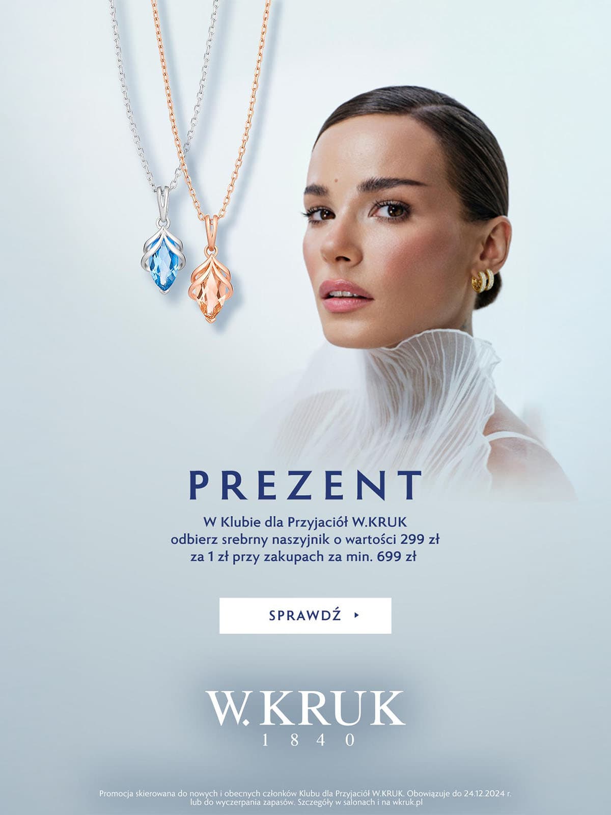 W Klubie dla Przyjaciół W.KRUK srebrny naszyjnik o wartości 299 zł w prezencie za 1 zł przy zakupach za min. 699 zł.